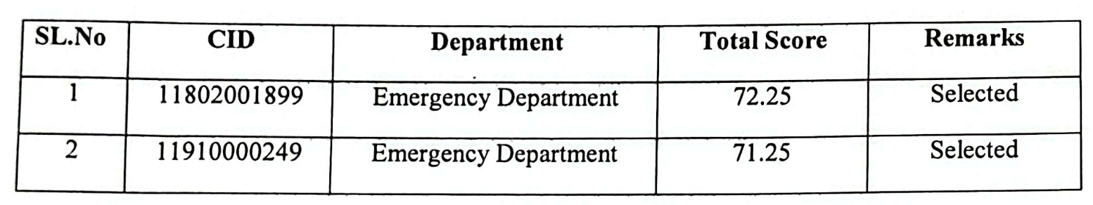 The Faculty of Postgraduate Medicine, Khesar Gyalpo University of Medical Sciences of Bhutan is pleased to announce the result of the selection interview of the faculty position held on September 13, 2025 for the post of adjunct faculty from Emergency Department, JDWNRH.